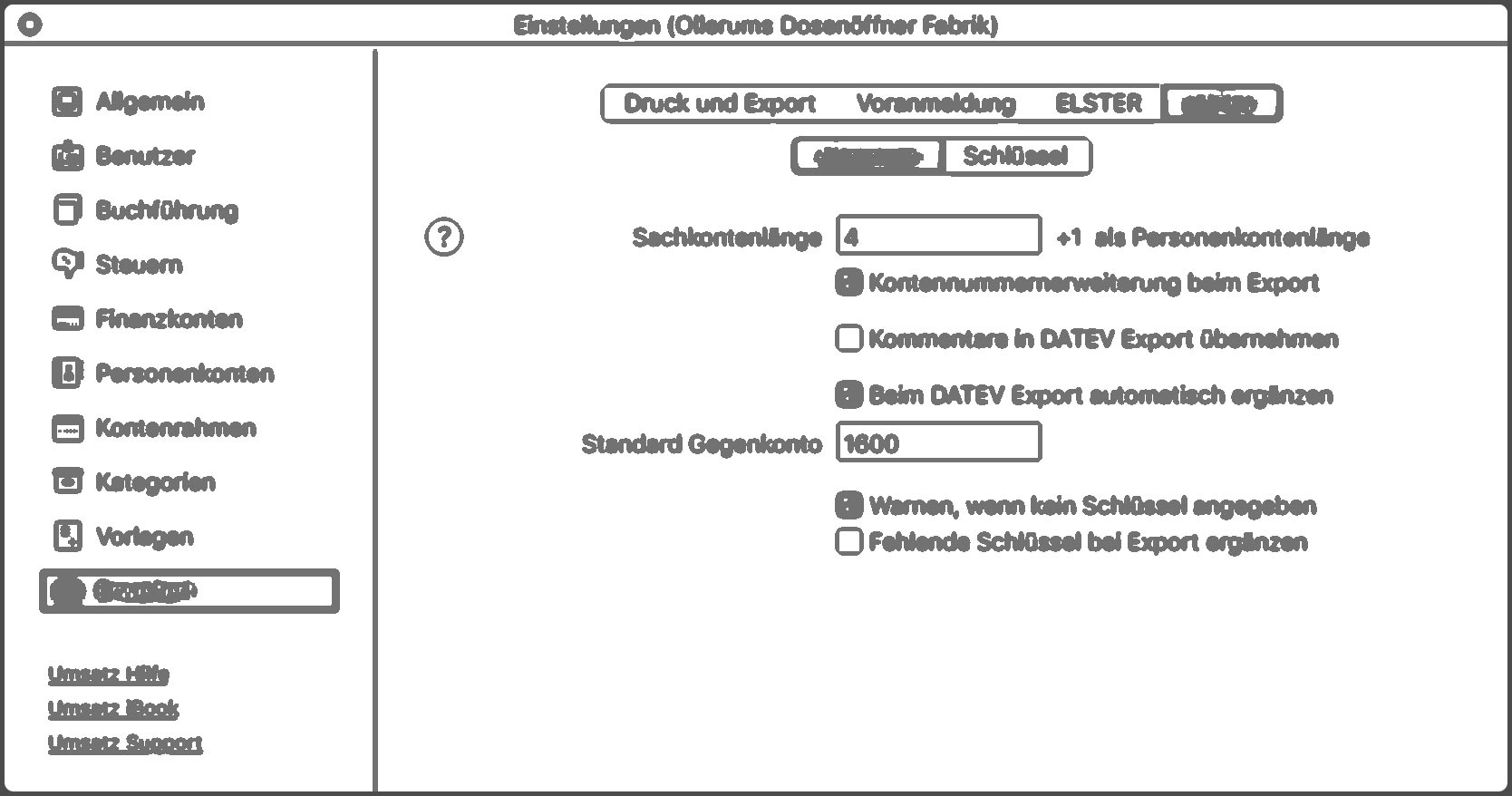 Und davon ausgehend kann Umsatz auch einen DATEV Export hinbekommen, selbst wenn nur auf ein Konto gebucht wurde, denn dann kann das fehlende Finanzkonto beim DATEV Export aufgefüllt werden.