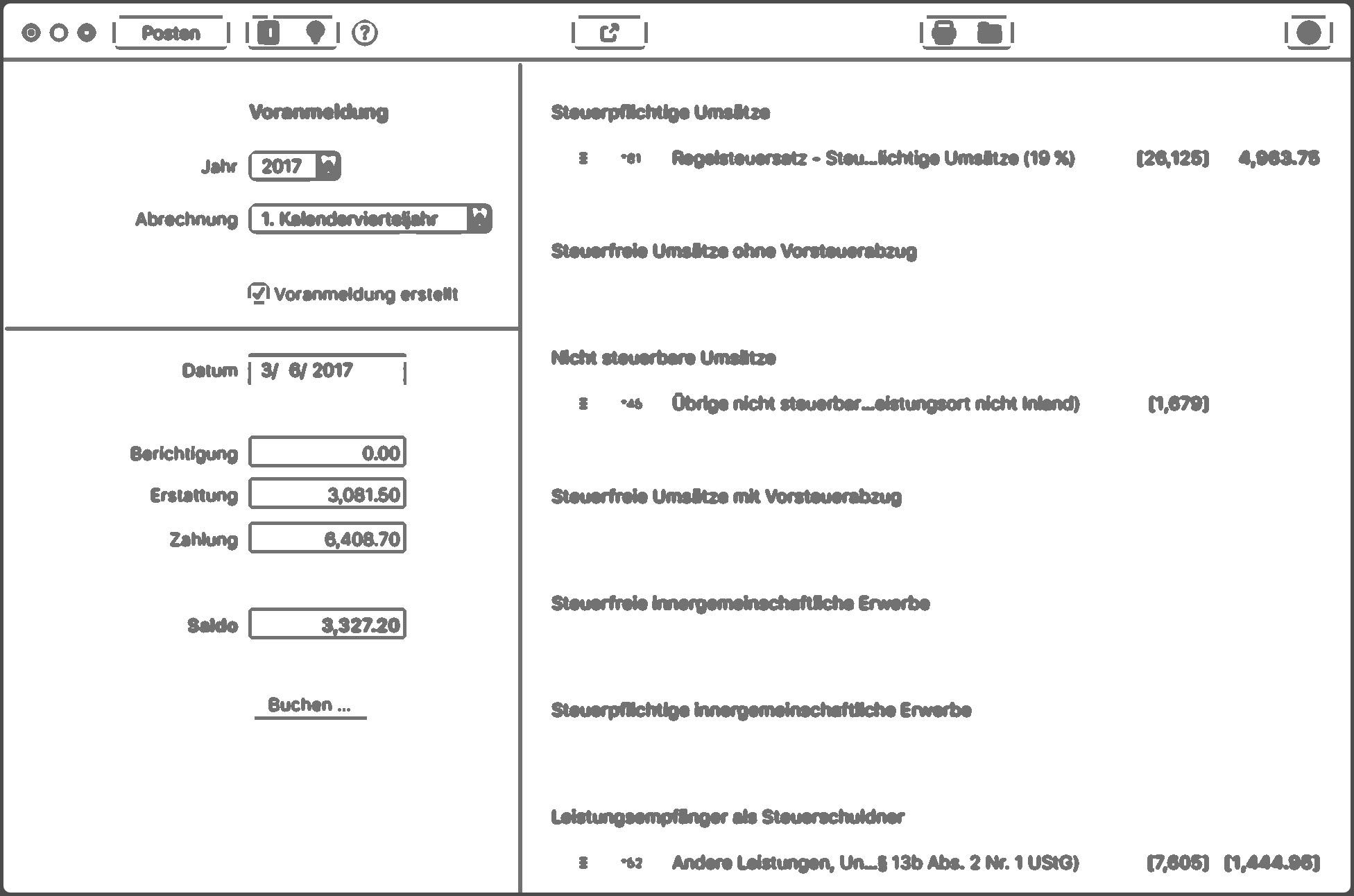 Zu grundsätzlichen Dingen mit den Steuern und der Voranmeldung gibt es einen eigenen Artikel und ein ganzes Kapitel im iBook.